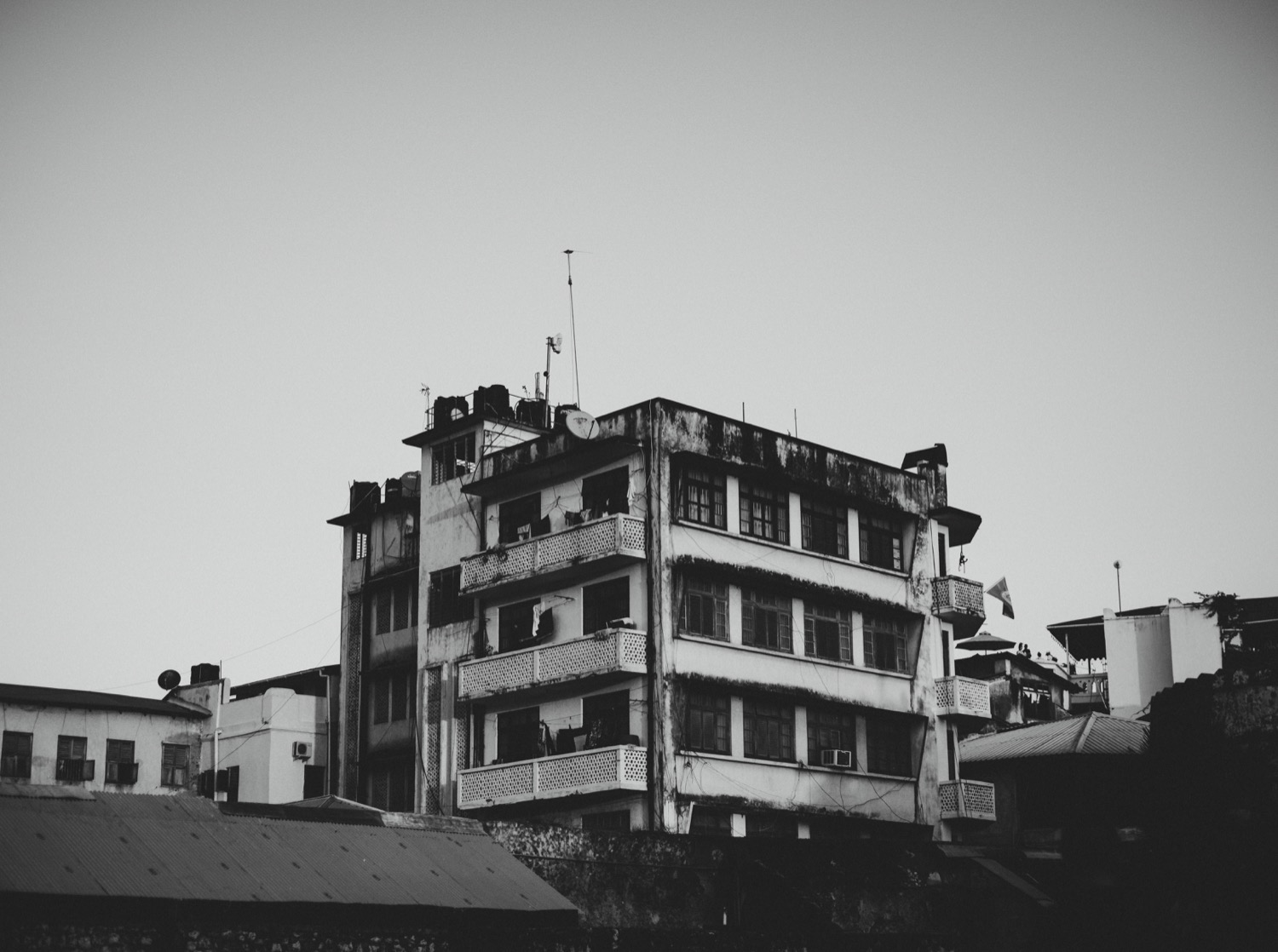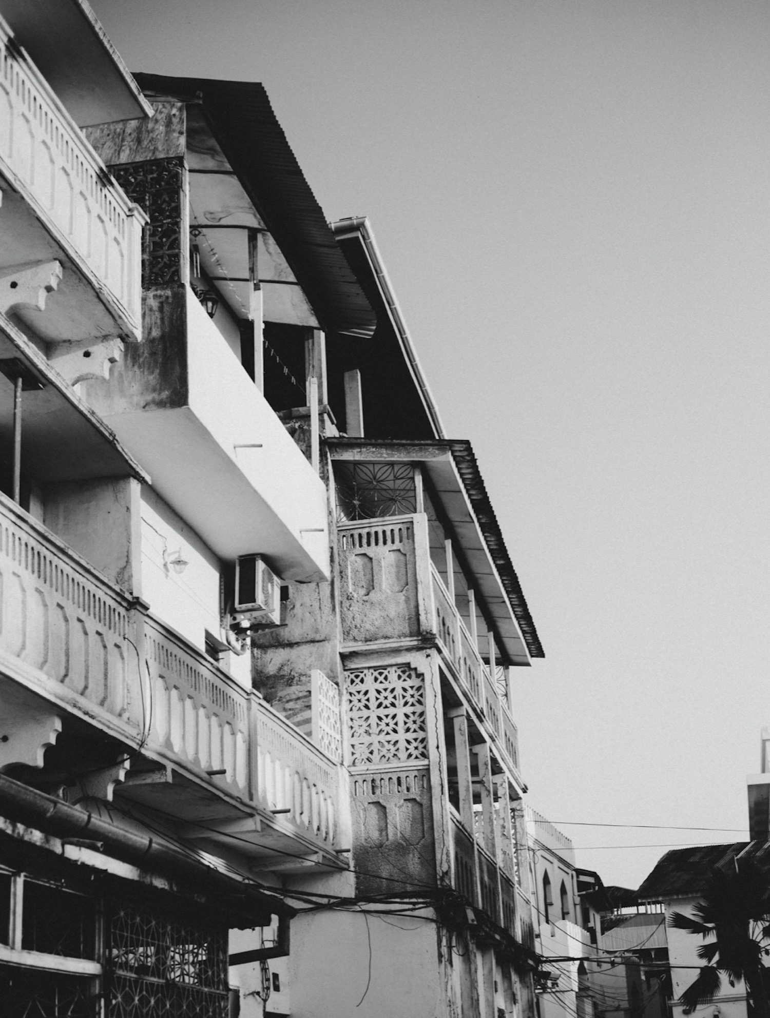 Stone Town is a maze of windows and fabled wooden doors. The doors and their intricate carvings are closed against the intrusive gaze of the pedestrian traffic. One floor up, though, the windows open up to the world and sky above. Privacy, it seems, is a question of one’s height above street or sea level.